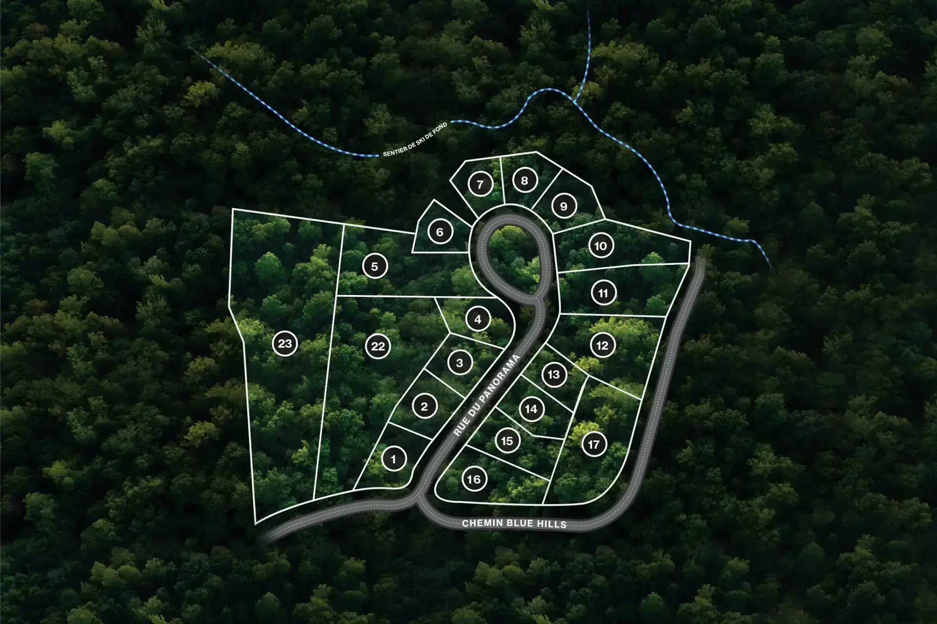 Accessible par le Chemin Blue Hill’s, une route municipalisée et asphaltée, le projet Blue Ridge à Morin-Heights propose des 25 terrains à vendre prêts à construire dans les montagnes. Avec des lots allant jusqu’à 270 000 pieds carrés entourés d’une belle forêt d’érables matures, ces espaces généreux, en pleine nature, offrent tranquillité et intimité.